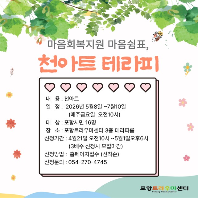 2026년 마음쉼표, 천아트 테라피 참여자 모집